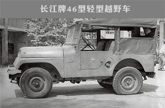 重慶長安汽車廠的工人與技術(shù)人員在沒有任何經(jīng)驗和生產(chǎn)基礎(chǔ)的艱苦條件下,對美制CJ-5吉普做了測繪設(shè)計,1958年5月,原456廠(長安集團公司前身)生產(chǎn)出國內(nèi)第一輛越野車——“長江牌”46型越野車,值得一提的是,這款車實現(xiàn)了近一千四百輛生產(chǎn)量。
