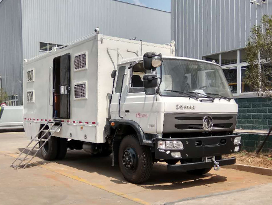 一、東風(fēng)四驅(qū)越野宿營車簡介:東風(fēng)四驅(qū)越野宿營車整個廂體分為三個部分,住宿區(qū)、洗漱區(qū)、餐飲區(qū)。住宿區(qū)包括四個上下鋪,床頭燈,液晶電視,空調(diào)等。洗浴區(qū)包括臉臺,衛(wèi)生間,熱水器等。餐飲區(qū)包括無煙灶臺,可活動餐桌,洗菜盆等。也可以根據(jù)用戶的需要設(shè)計,可增加會議室,辦公區(qū)等,東風(fēng)四驅(qū)越野野外宿營車適用于沙漠石油勘探野外作業(yè)、野外拉練、公路局野外作業(yè)等,可以在沙漠地區(qū),道路崎嶇的山區(qū)為工作人員提供野外生存的食宿保障,也可以作為辦公指揮車進(jìn)行指導(dǎo)工作。適合于部隊、勘探、搶險等野外作業(yè)環(huán)境。其底板采用鐵木混合結(jié)構(gòu),折疊式雙邊板,增設(shè)活動支撐桿,可拆式帳篷。平時,可做普通高欄板車廂使用;需野營時,放平雙邊板并支撐好,搭好帳篷,就可形成一座面積不同的高臺帳篷,可供不同編制人員住宿使用。