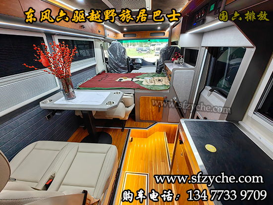 東風(fēng)六驅(qū)旅居巴士采用分時(shí)六驅(qū)硬派越野客車(chē)底盤(pán)打造,前身是油田勘探科考車(chē)輛,森林消防運(yùn)兵車(chē)輛,礦山地區(qū)的通勤車(chē),底盤(pán)成熟穩(wěn)重,三圍尺寸:長(zhǎng)8.63米,寬2.48米,高3.445米,內(nèi)部可利用空間可達(dá)15平方米,核定載客人數(shù)9人,滿(mǎn)足一家三代出行,一房一廳,獨(dú)立性好,私密性強(qiáng),搭配干濕分離衛(wèi)生間,前后大通鋪布局,內(nèi)部配置齊全,充分保證了車(chē)內(nèi)舒適空間。衛(wèi)生間、沙發(fā)、餐桌、廚房一應(yīng)俱全,讓你在野外也能享受家的舒適體驗(yàn)。配備大容量油箱和水箱,足夠支持長(zhǎng)時(shí)間的野外行程。