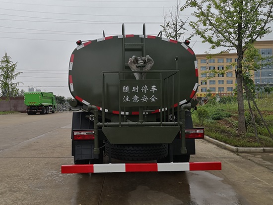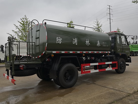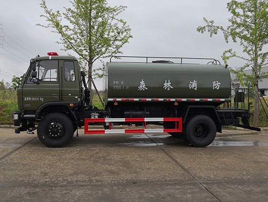采用東風(fēng)EQ2180GD5DJ型越野汽車底盤,東風(fēng)一排半寬體駕駛室,4×4驅(qū)動(dòng),康明斯ISB190 50國五發(fā)動(dòng)機(jī),六檔變速箱,東風(fēng)商用車橋,前驅(qū)動(dòng)橋3.8噸,后橋10噸,10.00R20輪胎,軸距4500mm,電動(dòng)玻璃,方向助力,斷氣剎,ABS。罐體采用優(yōu)質(zhì)碳鋼QB235板材,板材厚度4mm,罐體容積11.1立方,變速箱安裝取力器,大功率水泵可泵進(jìn)泵出,后置工作平臺(tái)帶水炮射程25米,消防栓接口左右各一個(gè),選裝駕駛室頂部安裝長(zhǎng)條警燈帶喊話器,全車顏色軍綠,兩側(cè)噴涂白色森林消防字樣。