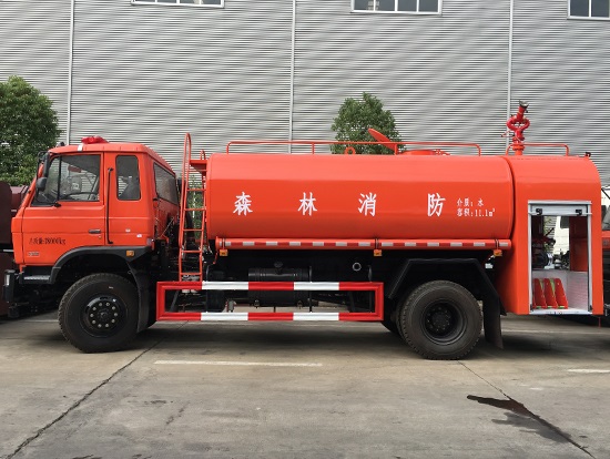 東風四驅(qū)越野森林消防水罐車_東風11.1噸四驅(qū)消防水車_國五四驅(qū)越野森林滅火水車_東風4×4越野SCS5183GPSEQ型四驅(qū)綠化噴灑車簡介:采用東風EQ2180GD5DJ型越野汽車底盤,東風153寬體駕駛室,4×4驅(qū)動,康明斯ISB190 50國五發(fā)動機,六檔變速箱,東風商用車橋,前驅(qū)動橋3.8噸,后橋10噸,10.00R20輪胎,軸距4500mm,電動玻璃,方向助力,斷氣剎,ABS。罐體采用優(yōu)質(zhì)碳鋼Q235板材,板材厚度4mm,罐體容積11.1立方,安裝夾心取力器,后置泵箱,消防栓接口左右各一個,消防炮采用PS40消防水炮,流量40L/S/1.0MPa 水射程:≥50m,消防泵采用常壓消防泵型號:CB10/40車用消防泵,流量:40L/s,壓力:1.0MPa,駕駛室頂部安裝長條警燈帶喊話器,全車顏色橘紅,兩側(cè)噴涂白色森林消防字樣。