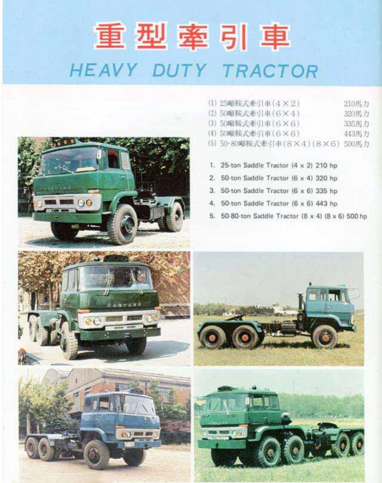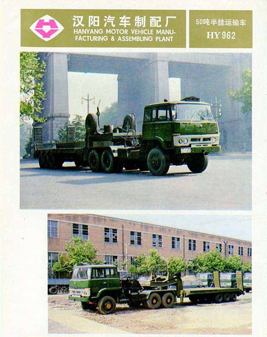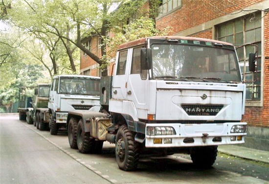 漢陽特種汽車制造廠生產(chǎn)軍用車的歷史可以追溯至上世紀(jì)60年代。當(dāng)時該廠完成了魚雷運輸車的試制任務(wù),從而步入軍工生產(chǎn)的行列,隨后漢陽又開發(fā)了導(dǎo)彈運輸車、舟橋車等軍用車。進(jìn)入到上世紀(jì)70年代,隨著我國汽車工業(yè)缺重少輕的矛盾日漸突出,漢陽在1972年研制成功了HY470型25噸4x2重型半掛牽引車,1979年,又成功開發(fā)出50噸的6x4牽引車。