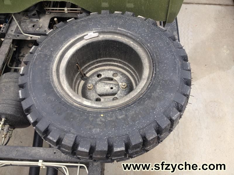 11R18型越野胎主要適用于軍用車輛行駛,可同時滿足軍用車輛在好路面上的高速行駛及在路況較差或無路情況下的越野行駛。該胎花紋采用無向塊狀設計,主行駛面花紋溝深度較淺且以縱向花紋溝為主,橫向花紋溝寬度較小,可提高輪胎的高速行駛性能、乘坐舒適性和操作穩(wěn)定性;胎肩部位的花紋以橫向花紋溝為主,花紋溝較寬較深,在越野時,對路面的抓著力強大,牽引力優(yōu)越、通過性能好,同時有利于花紋的散熱、排水和自潔性能。東風越野胎:m.kfjy68.com