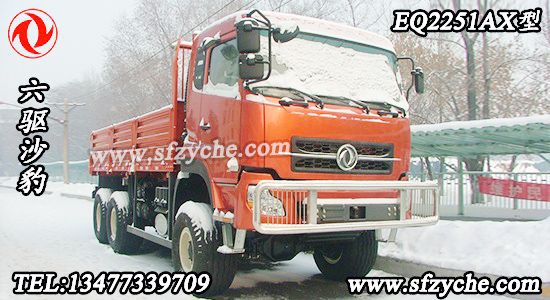 東風(fēng)牌EQ2251AX型沙漠越野車配置:采用東風(fēng)新款D310平頂單臥駕駛室,發(fā)動機:康明斯375馬力國四發(fā)動機 直列增壓中冷六缸水冷柴油機 ISLe375 40;北方奔馳同步器型9擋箱 9T-160 Φ430mm,膜片彈簧拉式離合器,7T前橋,10T 重慶大江雙級減速雙后橋 14.00-20輪胎 (選裝20-20 沙漠胎)軸距3800+1400 鋼板彈簧片數(shù)9/10,油箱350L,貨箱尺寸:5720×2294×800mm,整車外形尺寸:8470×2500,2700×3520,動力轉(zhuǎn)向。如需了解更多東風(fēng)六驅(qū)沙漠車圖片,東風(fēng)六驅(qū)沙漠車價格,東風(fēng)六驅(qū)沙漠車參數(shù),請立即撥打銷售熱線:13477339709 李經(jīng)理 0722-7053060 業(yè)務(wù)QQ:530233927,東風(fēng)越野卡車網(wǎng)址:m.kfjy68.com