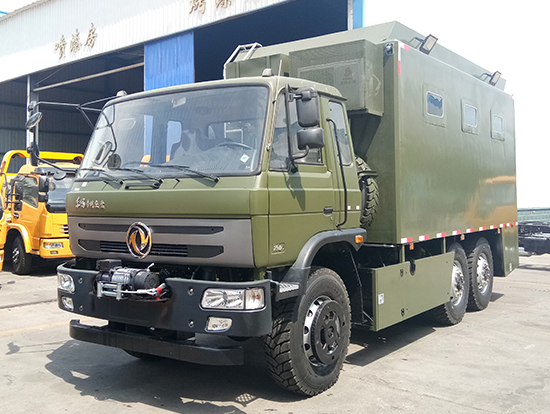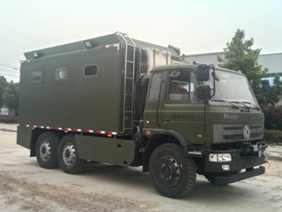 東風(fēng)國(guó)五六驅(qū)越野自行式炊事車_東風(fēng)軍用六驅(qū)炊事車_六驅(qū)野戰(zhàn)自行式餐廚車為部隊(duì)提供一種機(jī)動(dòng)、高效的專用現(xiàn)場(chǎng)飲食保障裝備,滿足部隊(duì)平時(shí)及野外值勤時(shí)的主副食的飲食保障工作,并解決部隊(duì)行進(jìn)中不停車做飯菜的需要及供應(yīng)飲用水的需求。六驅(qū)自行炊事車功能簡(jiǎn)介:該裝備主要編配于部隊(duì),為部隊(duì)官兵野外作業(yè)時(shí)提供良好的飲食保障:具有制作食品、保溫食品和儲(chǔ)存食品的空間與功能、并具有提供開(kāi)水和餐具消毒的功能。